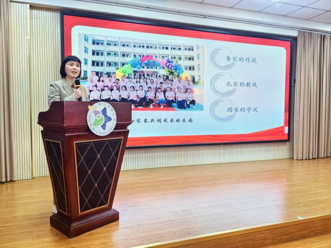 东三马路小学校长曹悦致欢迎词。她首先代表学校对管城回族区领导、beat365官方网站教育学院领导班子成员的到来表示热烈的欢迎,介绍了东三马路小学的“三实”教育理念、师资力量及特色课程,对即将开启的合作充满期待。她希望两校能够以此为契机,携手发展、合作共赢,进一步提升两校办学质量。