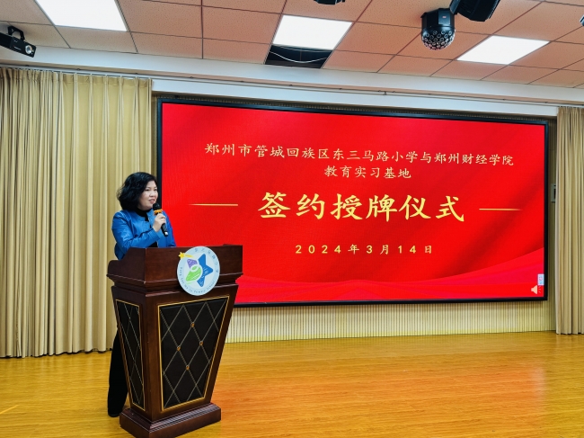最后,郑州市管城回族区教育科学规划与评估中心主任姚耐孔讲话,她对教学实践基地的落成表示祝贺,同时表达出对两校合作的期待。