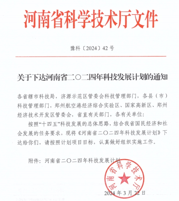 近日,河南省科学技术厅发布《关于下达河南省二O二四年科技发展计划的通知》豫科〔2024〕42号,beat36513项课题获批立项,其中包括8项软科学项目和5项科技攻关项目。