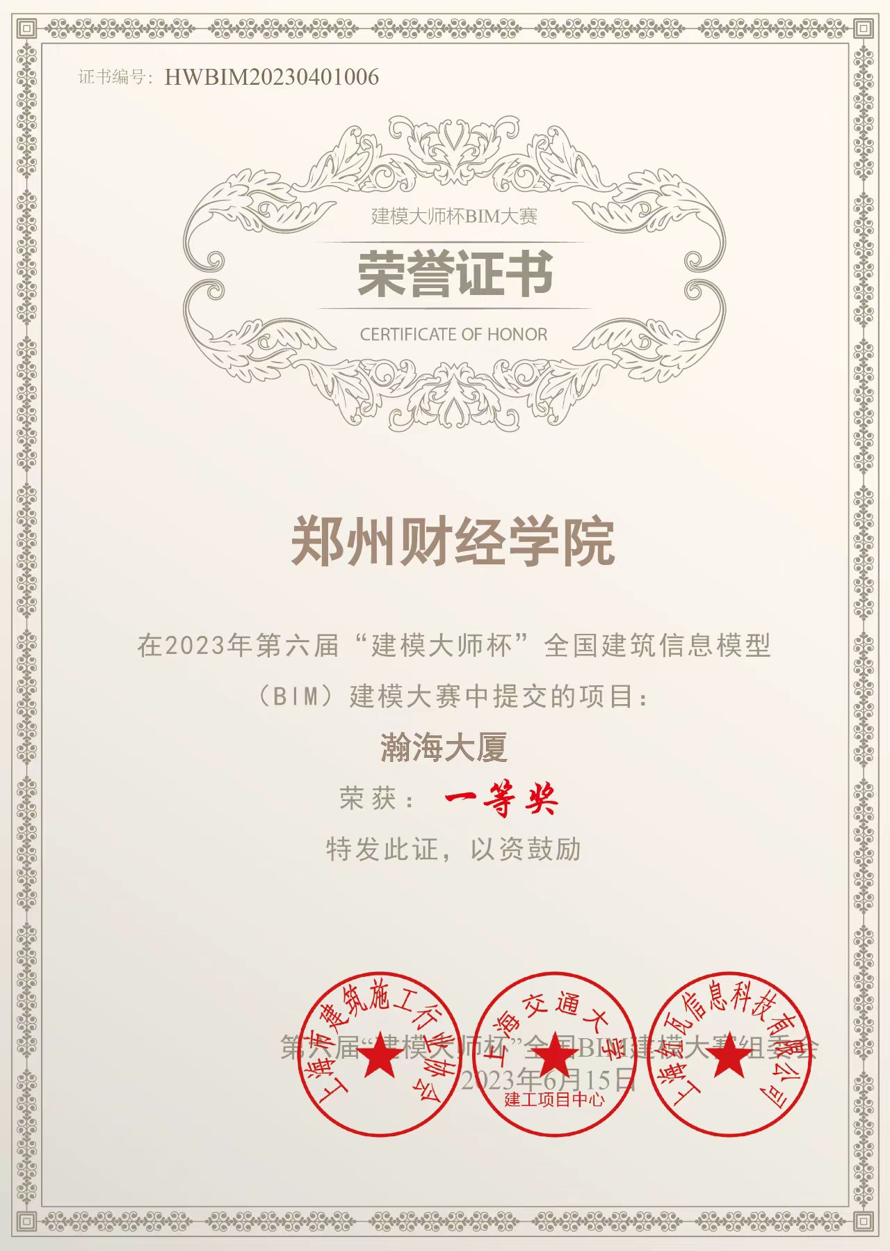 首场比赛的胜利给了瀚海团队极大的鼓舞,他们积极总结经验,补足漏洞,向着更高更远的目标冲击。在学校BIM技术研究中心的精心组织下,他们先后参加了2023“建美中原”河南省大学生建筑设计大赛、第六届“建模大师杯”全国BIM建模大赛、2023年全国数字建筑创新应用大赛、第十届全国高校BIM毕业设计创新大赛等多项省级、国家级比赛。