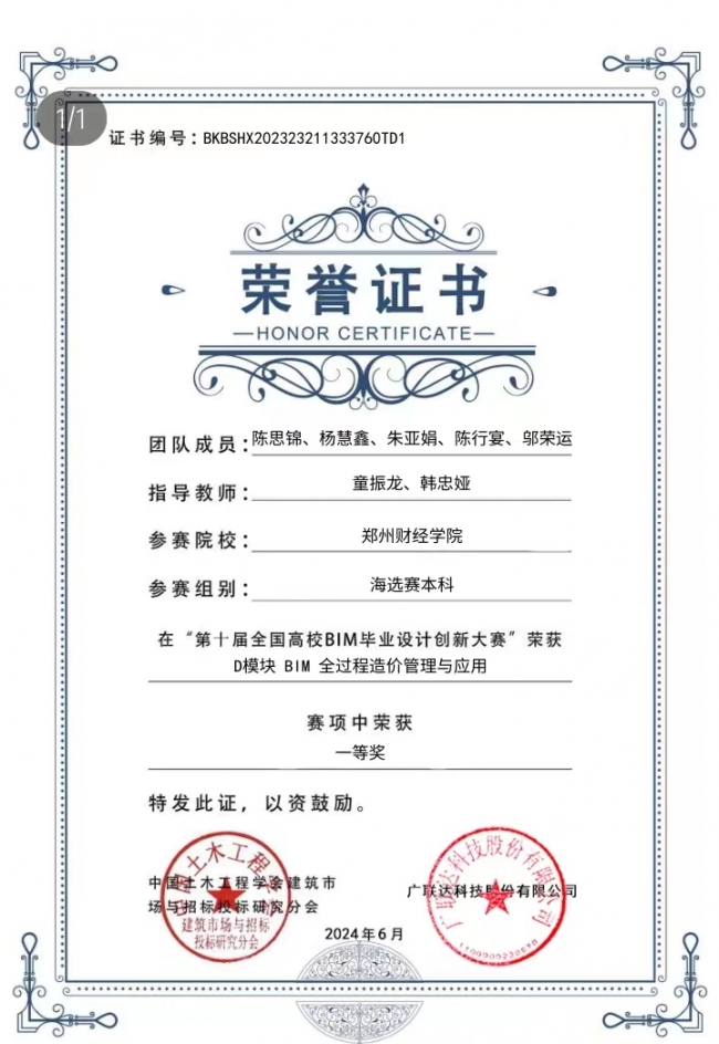 近日,第十届全国高校BIM毕业设计创新大赛成绩揭晓,beat365土木工程学院参赛学子的作品从全国665家院校、12000余支团队、7万余名师生、3984份作品中脱颖而出,荣获本科组各参赛事项14个奖项,其中,由瀚海团队设计的作品《海珀悦澜湾11号楼项目BIM全过程造价管理与应用》斩获全国一等奖。