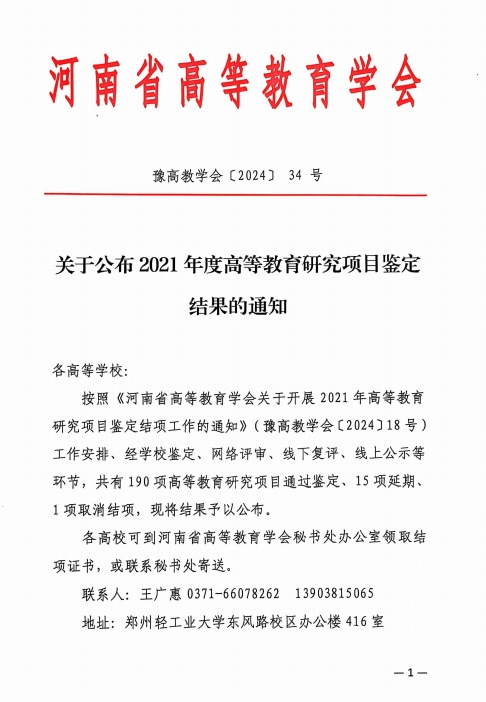 近日,河南省高等教育学会下发了《关于公布2021年度高等教育研究项目鉴定结果的通知》(豫高教学会〔2024〕34号),beat365主持的2个项目顺利通过鉴定。