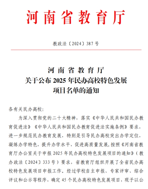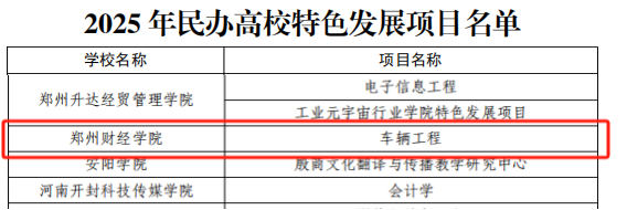近日,河南省教育厅发布了《关于公布2025年民办高校特色发展项目名单的通知》(教政法〔2024〕387号),beat365车辆工程专业获批专业特色类发展项目。