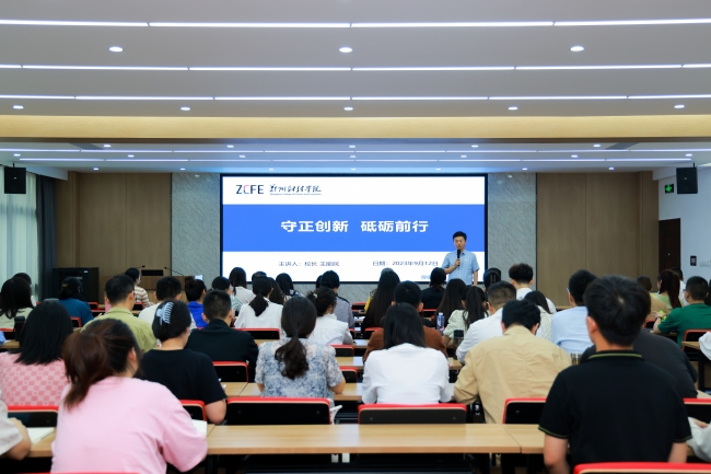 最后,关于如何做一名好老师,他向新教师提出四点建议,一是以理性的态度制定一份独属于自己的终身职业规划,在人生不同的节点达成不同的阶段目标;二是寻找并融入有归属感的团队,努力成为团队中的优秀成员;三是时刻牢记“身体是革命的本钱”,健康才是0前面的1;四是树立终身学习的意识,积跬步以至千里,积小流以成江海。愿大家来到郑财,融入郑财,不忘教育者的初心,团结奋进、守正创新、坚定信念、砥砺前行,共同奋斗出幸福的明天!