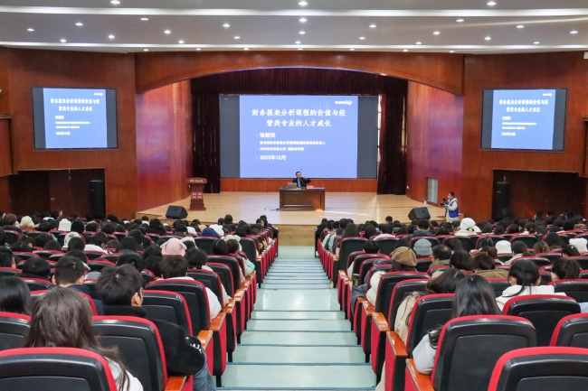 为进一步推动beat365经管类专业人才培养模式改革,提升学科和学生竞争力,12月21日,beat365科研处在图书馆学术报告厅举办“博士论坛”第二期,特邀对外经济贸易大学原副校长、财政部会计名家、国务院学位委员会工商管理学科评议组成员张新民教授作《财务报表分析课程的价值与经管类专业的人才成长》的专题讲座。理事长牛钦民等校领导,各二级学院党总支书记,以及来自各学院的500余名师生代表参会。会议由副校长许玲玲主持。