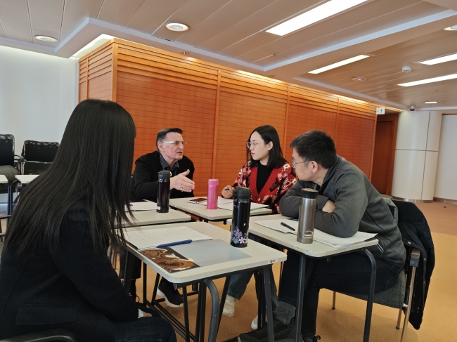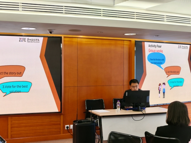 由金立贤教授、Martin Cortazzi教授合作主讲的“Intergrated Teaching of CCTI”和“Discourse Analysis”主题讲座,通过历史引出了粤语、普通话、英语、葡萄牙语等多语种模式下,澳门特别行政区的语言文化特色,以及其在政治、经济、文化领域的跨文化沟通体现。同时还结合亲身经历,形象地介绍了多语体系和多元文化带来的独特体验。通过示范教学、分组讨论、教学设计展示和教学评价等活动,综合讲解语言方式教学法、文化方式比较法、能力培养法、困境问题解决法、实践体验法和社会实践运用法,在CCTI英语教学中的具体应用。他们强调,言语是对语言系统资源的使用,其价值观体现的是表达者的价值观,言语产品可以提供中性信息,但言语产品还可能携带个人或组织代言人的偏见乃至敌意。在外语教育过程中,师生接触外语,不是接触任何语种的抽象语言系统,而是接触具体的外语文本,师生不仅需要具备对外语文本的批判性文化意识,还需要综合运用思辨力、跨文化能力和语用分析能力解读文本,做好中国国际传播。