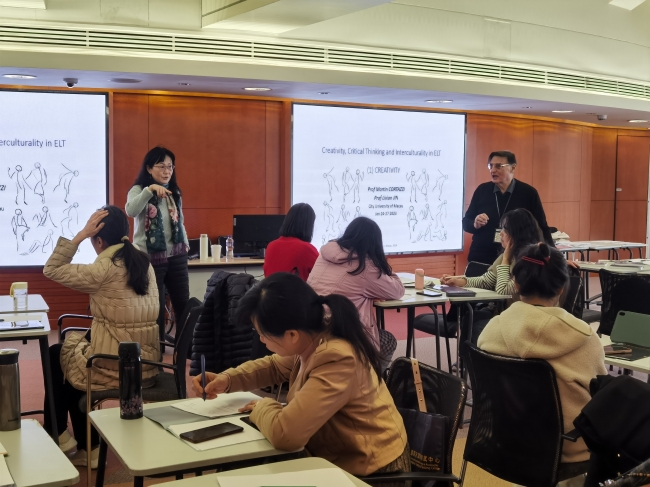 本期研修班由澳门城市大学与外语教学与研究出版社联合举办,由澳门城市大学的金立贤教授、Martin Cortazzi教授等外语界大咖担任主讲专家,来自全国各高校的骨干英语教师代表共18人参加。为期一周的研修活动采用全英文授课和交流,聚焦高校英语教师如何围绕创造力、思辨力和跨文化能力三大核心话题开展有效英语教学。研修班培训内容丰富多彩,参训教师通过参加主题讲座、实践工作坊、跨文化体验和成果展示,在学习前沿教学理念、提升教学实践能力的同时,还体验了多元文化背景下的特色语言教育,提升自身综合素养,促进专业化发展。