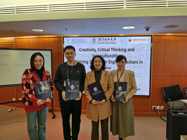 为帮助beat365英语教师更新教学理念、精研教学方法、有效开展教学,切实提高教学质量,2024年1月23日至29日,学校选派闫静等4名英语骨干教师赴澳门城市大学,参加主题为“英语教学中的创造力、思辨力与跨文化能力培养”研修班。
